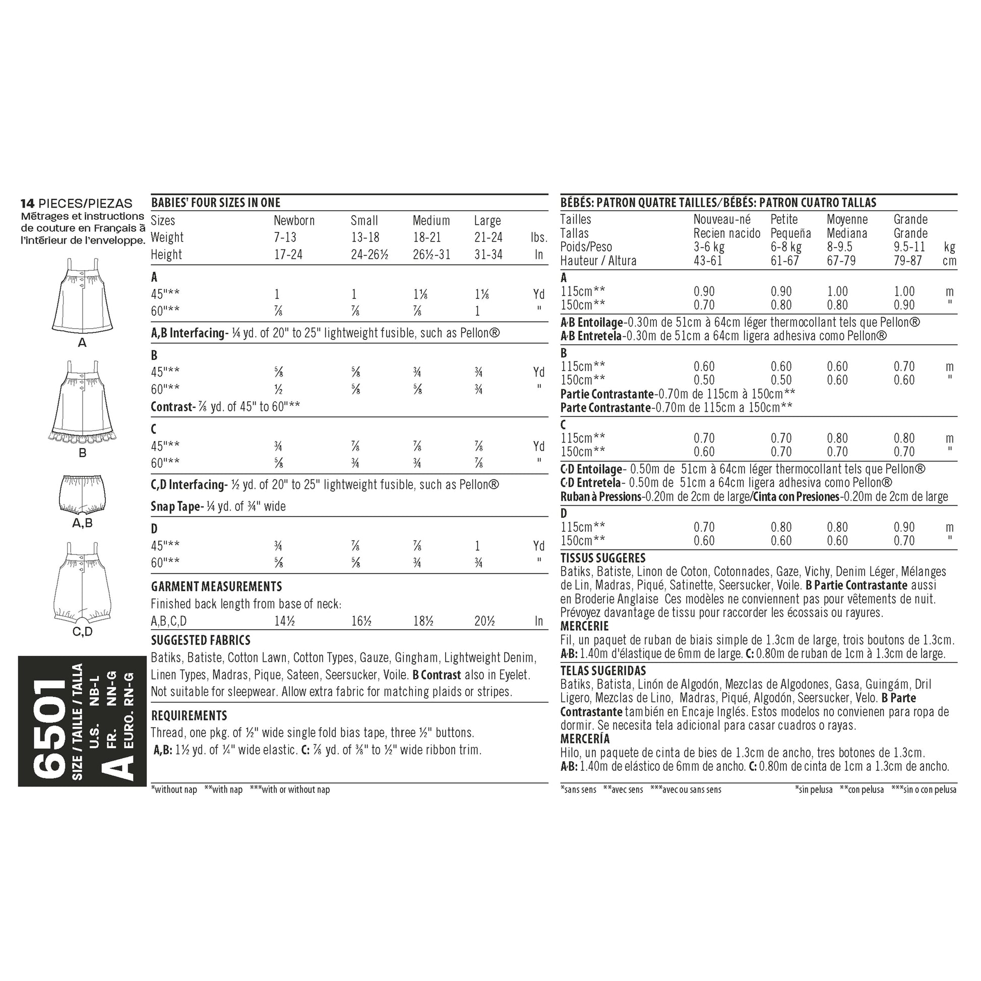 Make these adorable dresses with panties and rompers for baby. Features ruffle edges. Romper has front pockets with or without bow details. New Look sewing pattern.