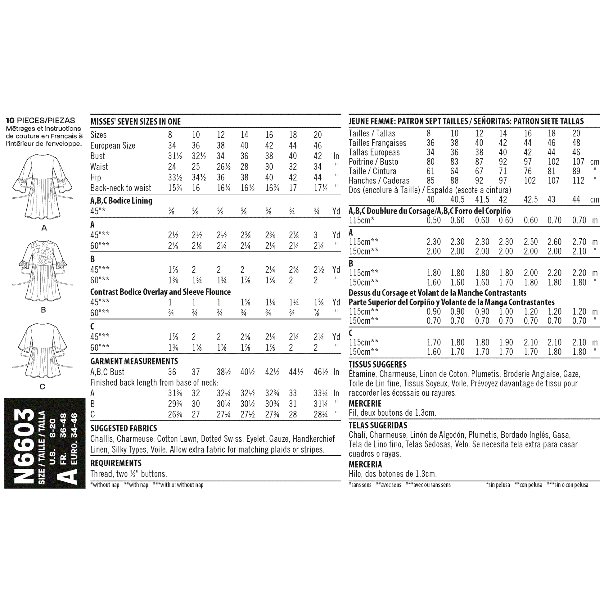 Top or mini dress with empire waist is close-fitting at bust with button closure. Length and sleeve style variations. New Look Paper Sewing Pattern.
