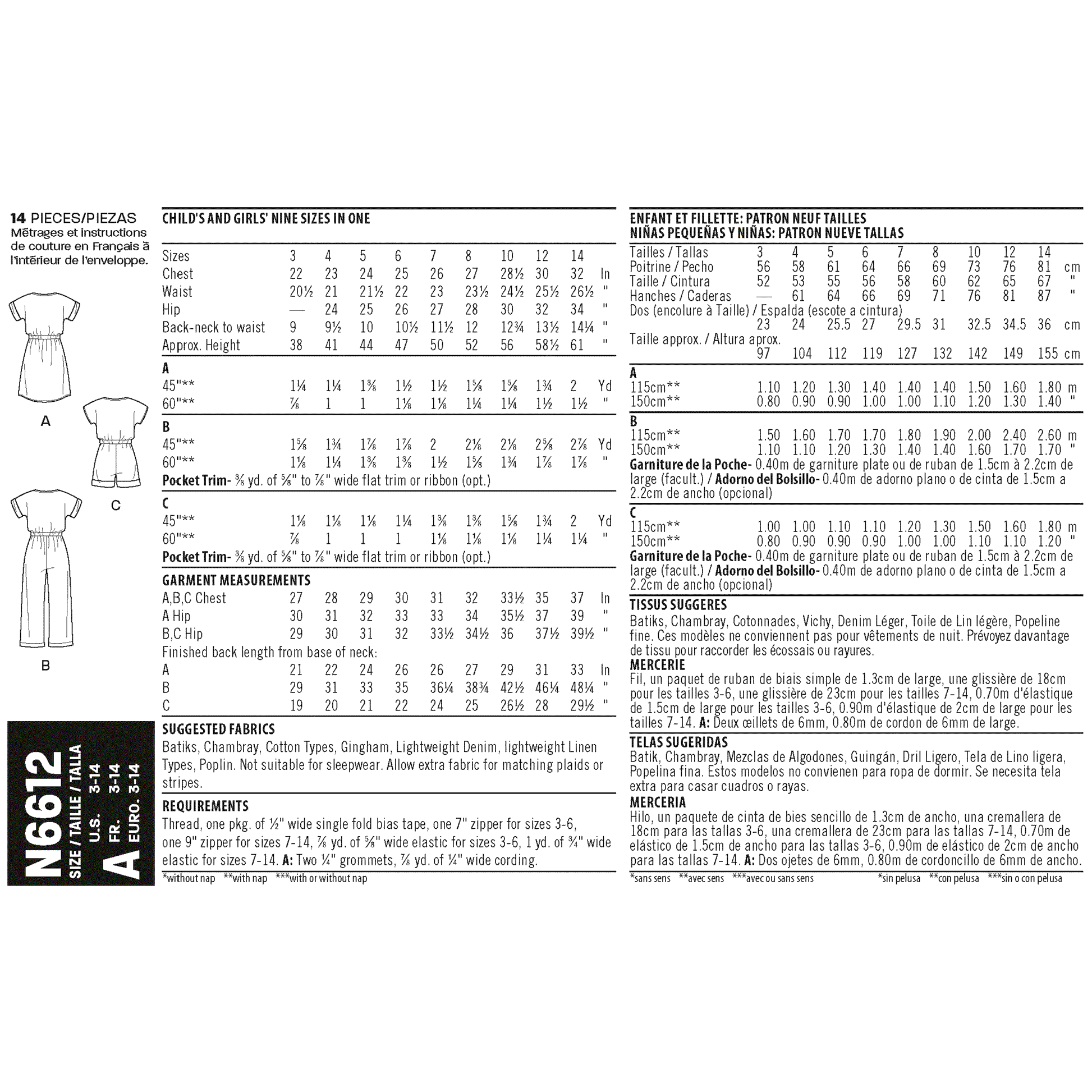 6612 - Children's Dress Jumpsuit & Romper