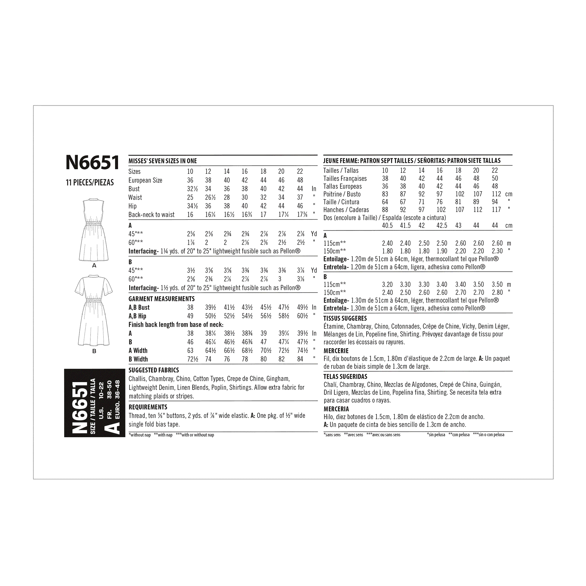Ladies Shirtwaist Dresses in two lengths. Dress button fastens at front with elasticated waist. Sleeve and collar options. Designed for woven fabrics. New Look Pattern.