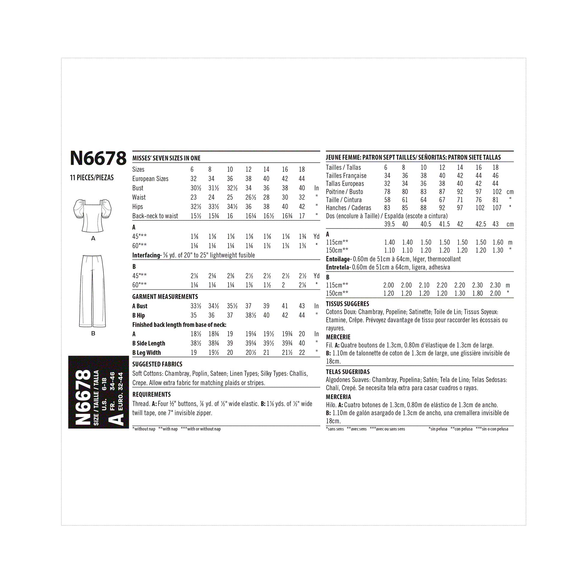 Ladies button-front Top and straight-leg Trousers. New Look Pattern.