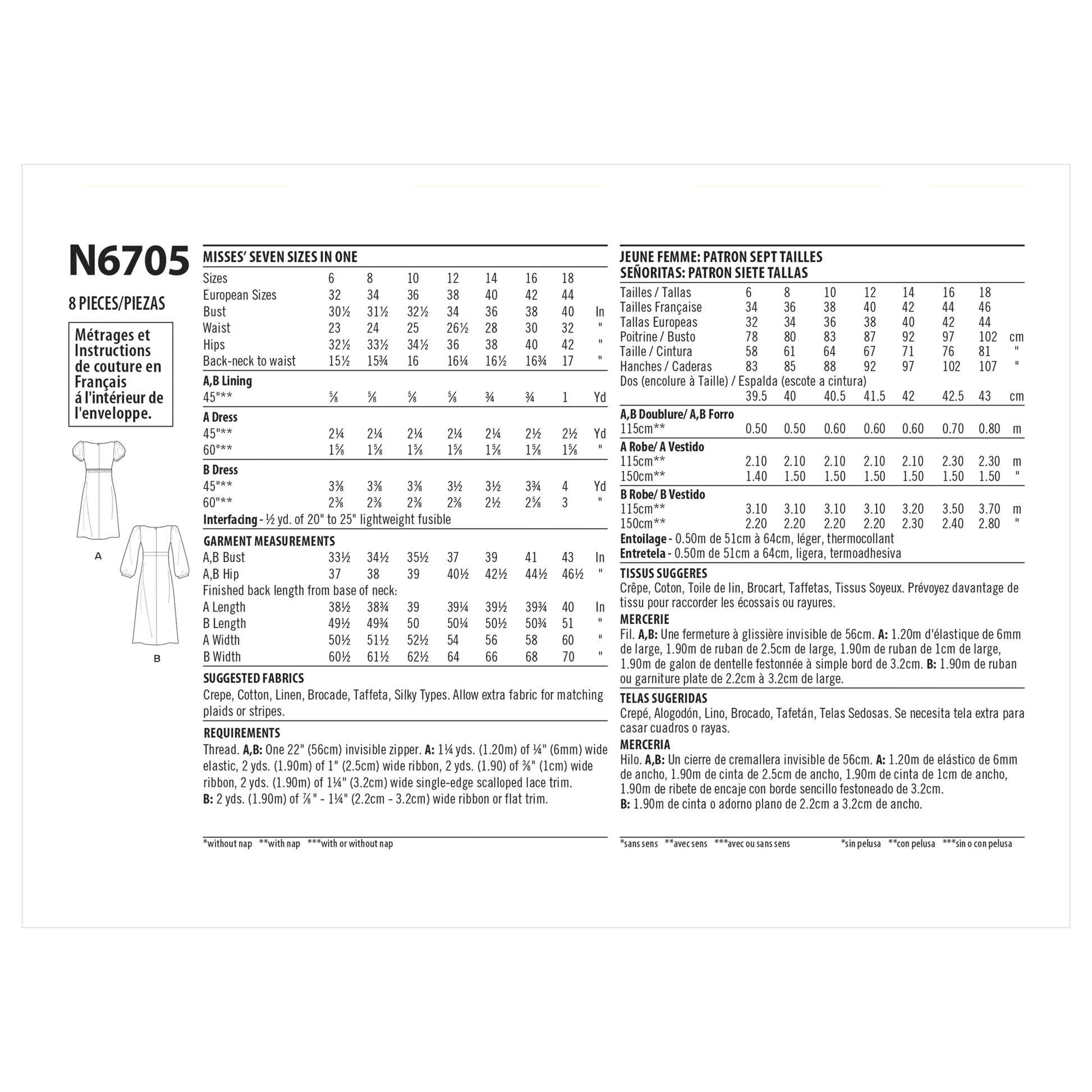 Ladies empire waist dress is knee or calf length w/ low square neckline & has short puffed or long sleeves gathered to band. New Look Pattern.