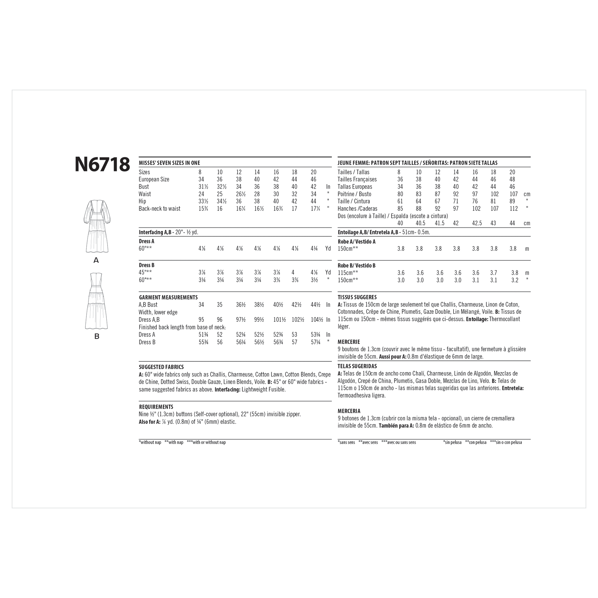 Ladies dresses. Balloon sleeve midi dress has plunged neckline and faux button tab with non-working buttons. Drop waist tiered skirts have two length options and side seam pockets. Sleeveless maxi dress has bias tape finish at armholes. Back bodices have invisible zipper closure. New Look Pattern.
