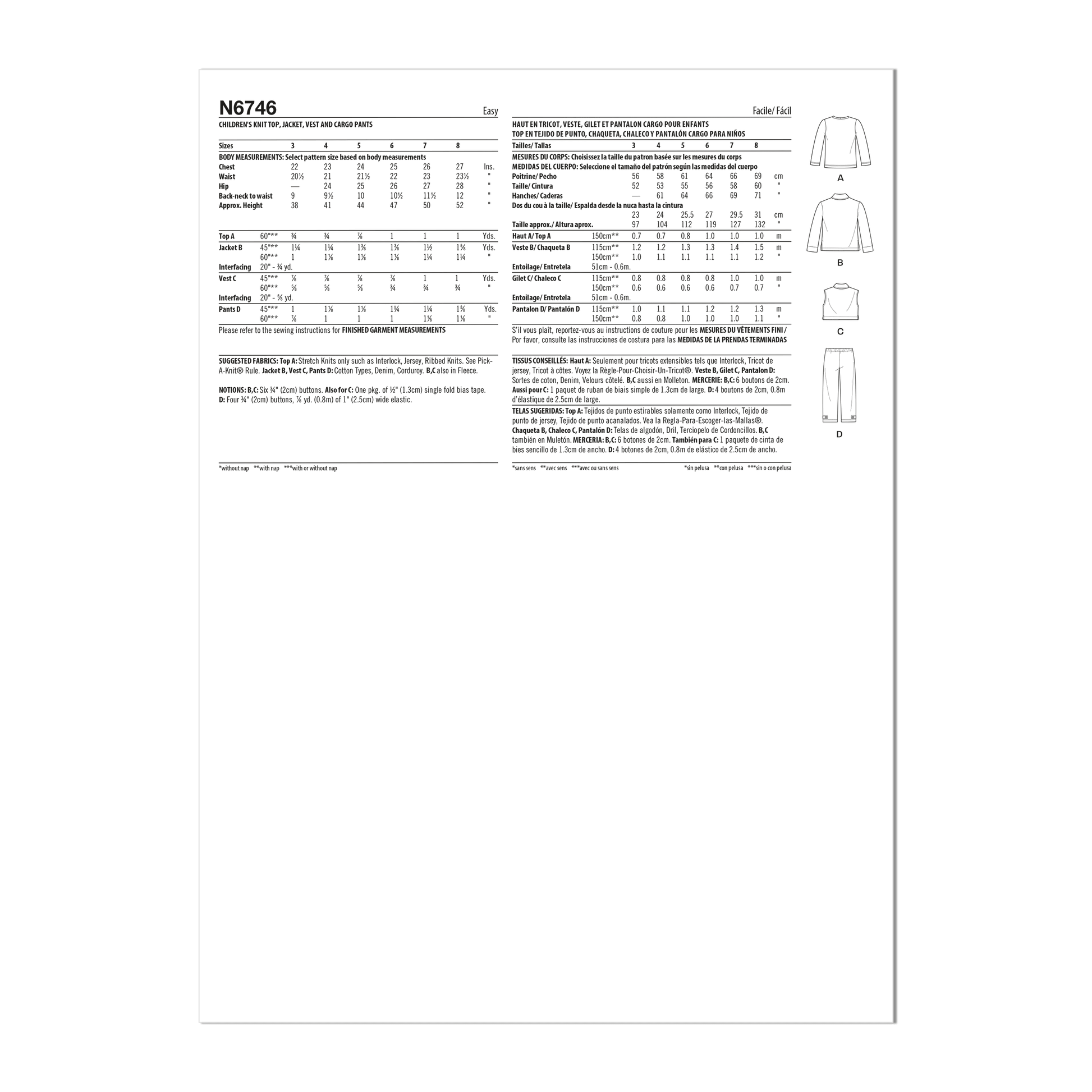 Children Tops & Pants. Button front jacket, cropped vest and pull-on pants have pocket details; crew neck top is for knits only. New Look Pattern.