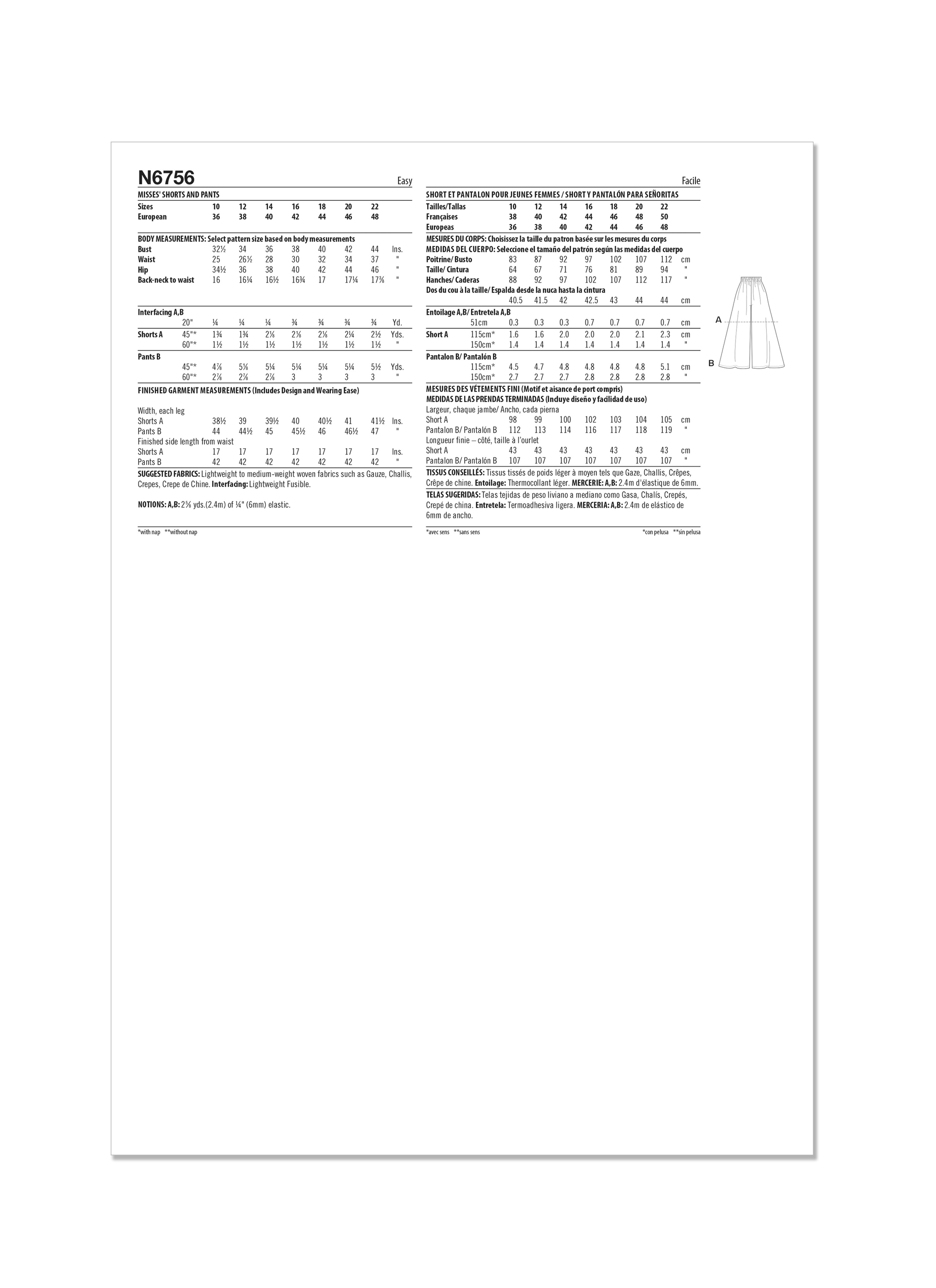 Ladies Wide Leg Pants. Easy to sew loose-fitting shorts and wide leg pants have front waistband and pleats, elasticized back casing, side-front pockets and stitched hems. New Look Pattern.