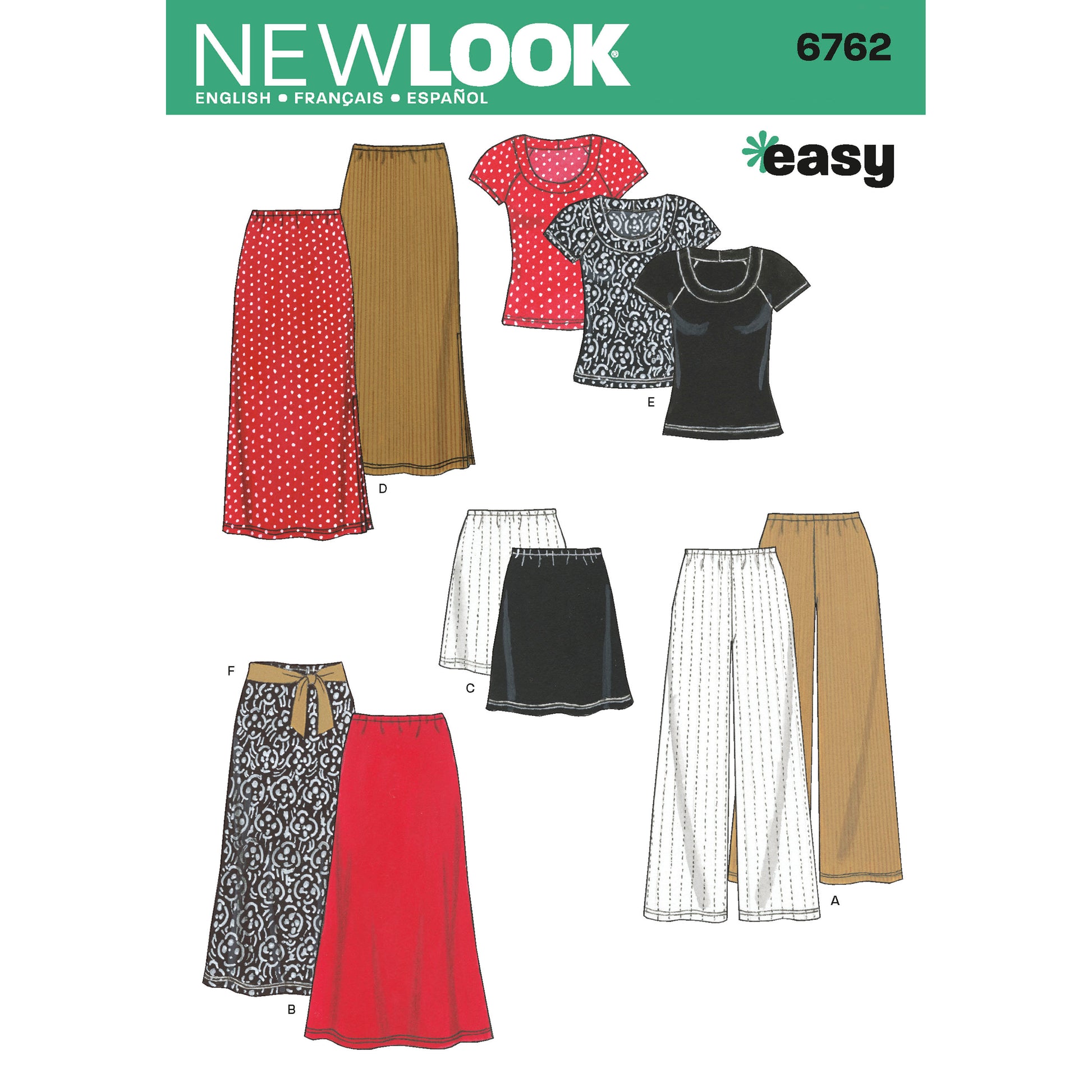 Ladies Tops & Skirts. Easy to sew short or midi length pleated skirt has side zipper openings and optional ribbon detail. New Look Pattern.