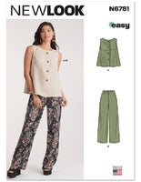 Ladies Top & Pants. Easy to sew. Loose-fitting top with button front closure and semi-fitted pull-on trousers with elastic waist and side pockets are easy to sew. New Look Pattern.