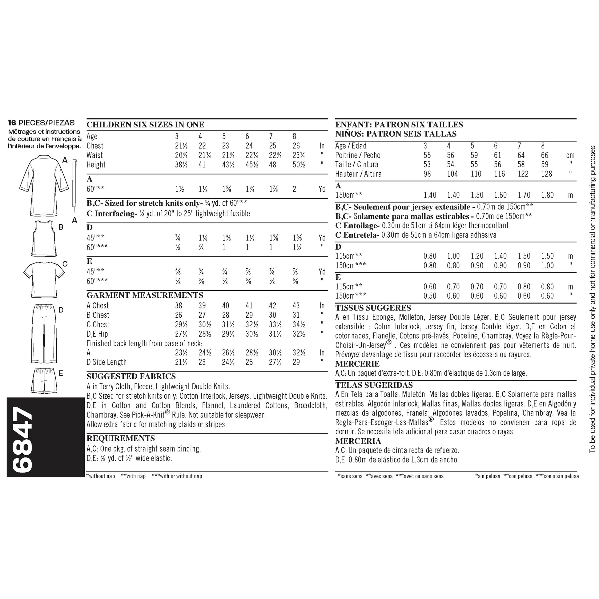 Children's Robe, Pajama Pants, Shorts & Tops. New Look Pattern.