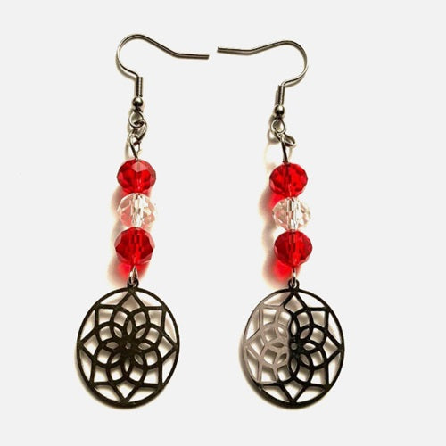 Handmade Earrings - Red & Clear Beads - Flowers
