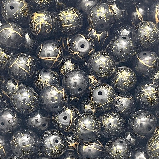 Glass Round Black & Gold Beads - 50 Pieces - Size 12mm