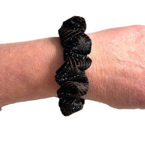 Scrunchies - Black & Brown Velvet with Glitter - Mini Size