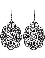 Retro Black Hollow out Geometric Pattern Drop Dangle Earrings