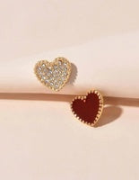 Rhinestone Red Silver Enamel Heart Asymmetric Stud Earrings
